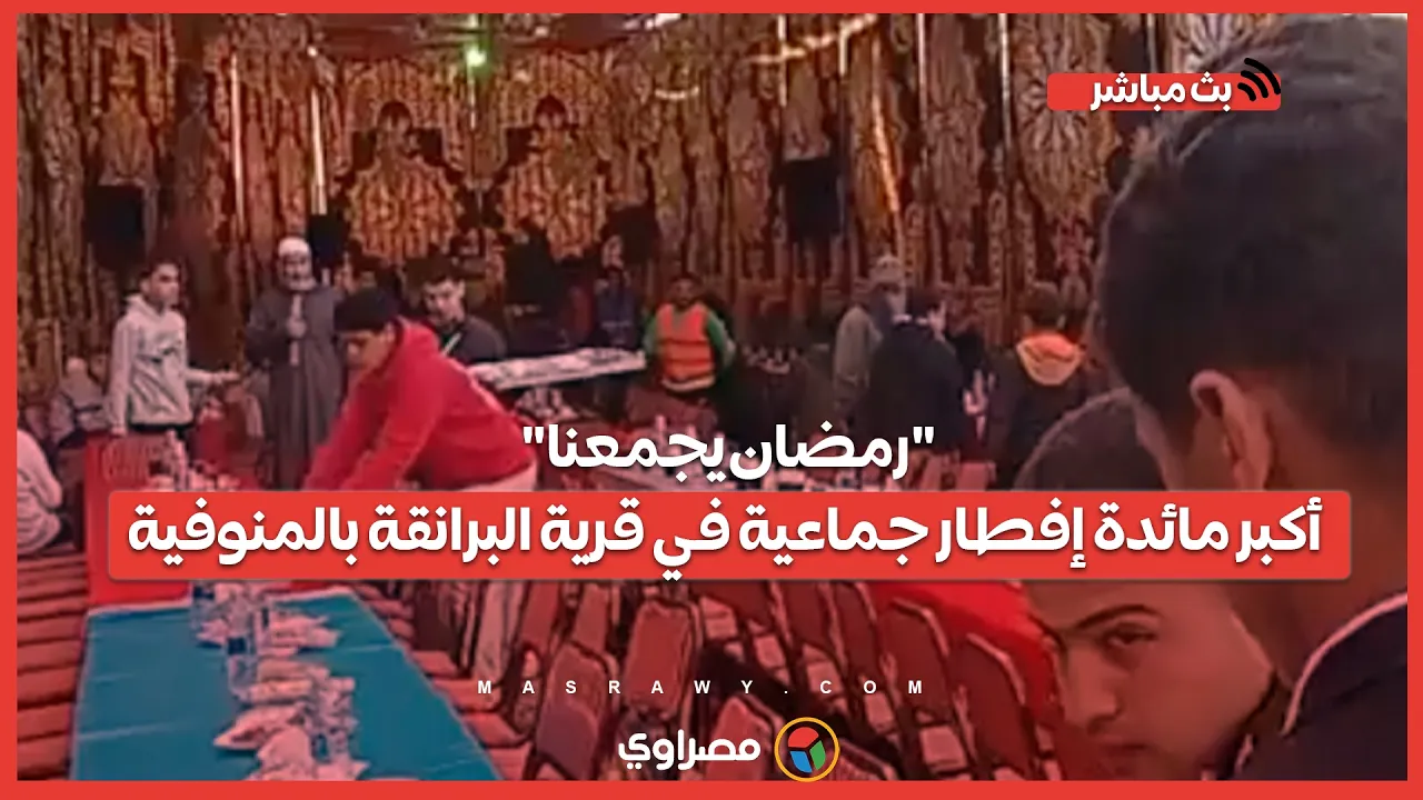 "رمضان يجمعنا".. أكبر مائدة إفطار جماعية في قرية البرانقة بالمنوفية