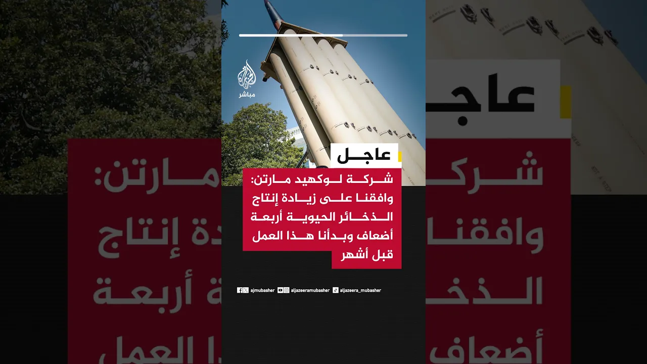 عاجل | شركة لوكهيد مارتن الأمريكية: وافقنا على زيادة إنتاج الذخائر الحيوية أربعة أضعاف وبدأنا هذا العمل قبل أشهر