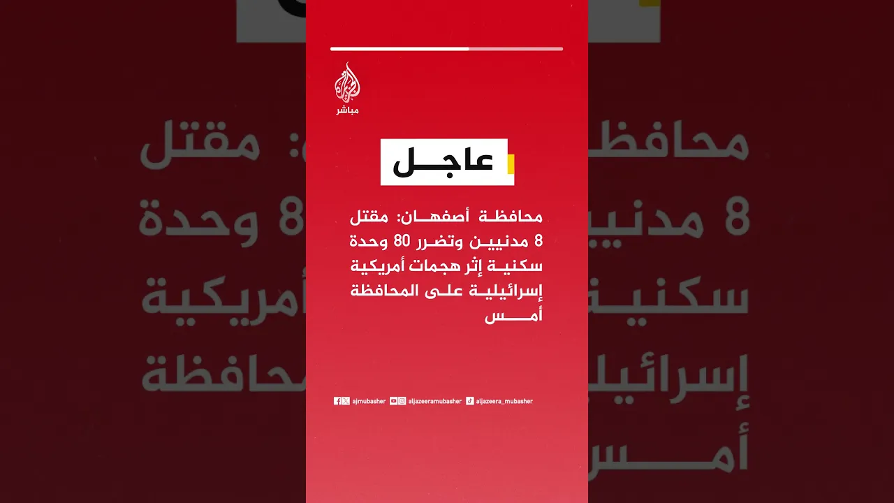عاجل | محافظة #أصفهان: مقتل 8 مدنيين وتضرر 80 وحدة سكنية إثر هجمات أمريكية إسرائيلية على المحافظة أمس