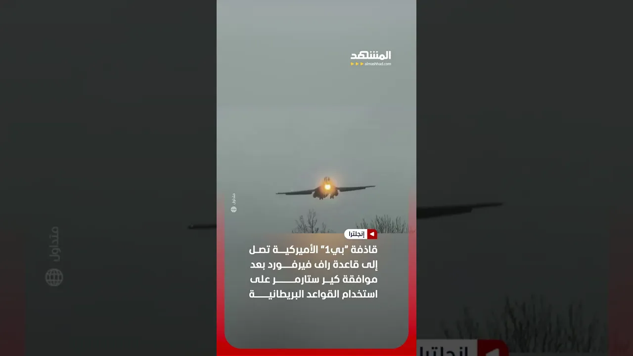 هبوط قاذفة أميركية ضخمة في بريطانيا لاستخدام القواعد ضد إيران #اخبار_المشهد #إنجلترا #المشهد