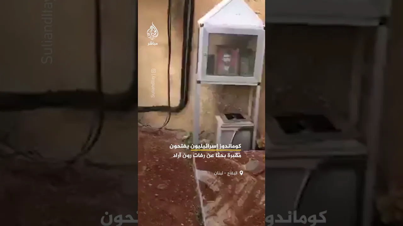 بثت وسائل إعلام لبنانية، صباح اليوم السبت، مقاطع فيديو قالت إنها التُقطت من موقع حفرة في مقبرة "آل شكر" في بلدة النبي شيت بالبقاع شرق لبنان. وأفادت هيئة البث الإسرائيلية بأن هذه الحفرة "حفرها كوماندوز إسرائيليون في مقبرة النبي شيت، وذلك في إطار جهود البحث عن الطيار المفقود رون أراد".