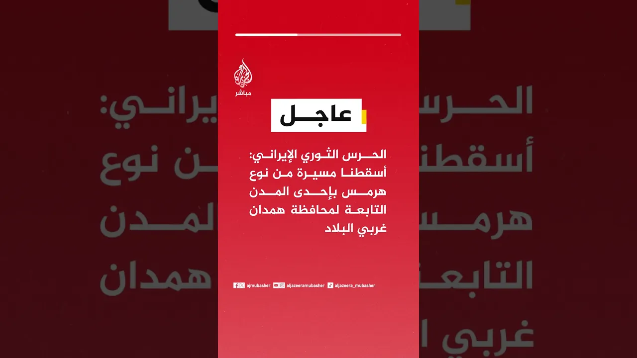 عاجل | الحرس الثوري الإيراني: أسقطنا مسيرة من نوع هرمس بإحدى المدن التابعة لمحافظة همدان غربي البلاد