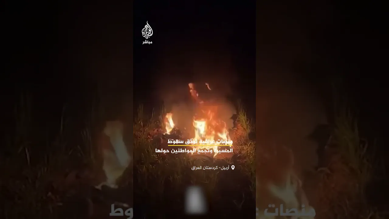 ‫مشاهد تداولتها منصات عراقية توثق لحظة انفجار طائرة مسيرة في سماء مدينة #أربيل بإقليم كردستان #العراق  واشتعال حطامها