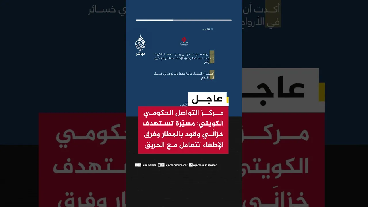 مركز التواصل الحكومي الكويتي: مسيّرة تستهدف خزانَي وقود بالمطار وفرق الإطفاء تتعامل مع الحريق
