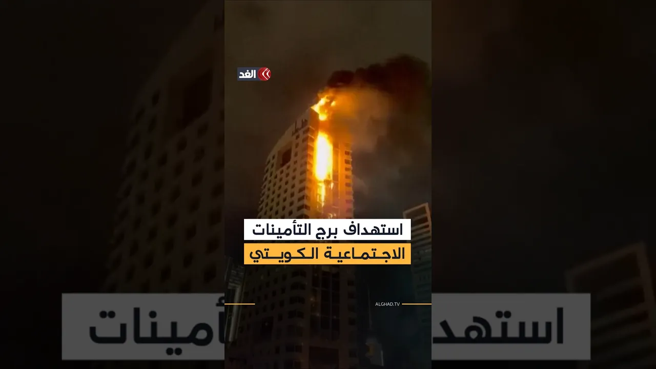 لقطات توثق اشتعال برج التأمينات الاجتماعية الكويتي بعد استهدافه بمسيّرة إيرانية