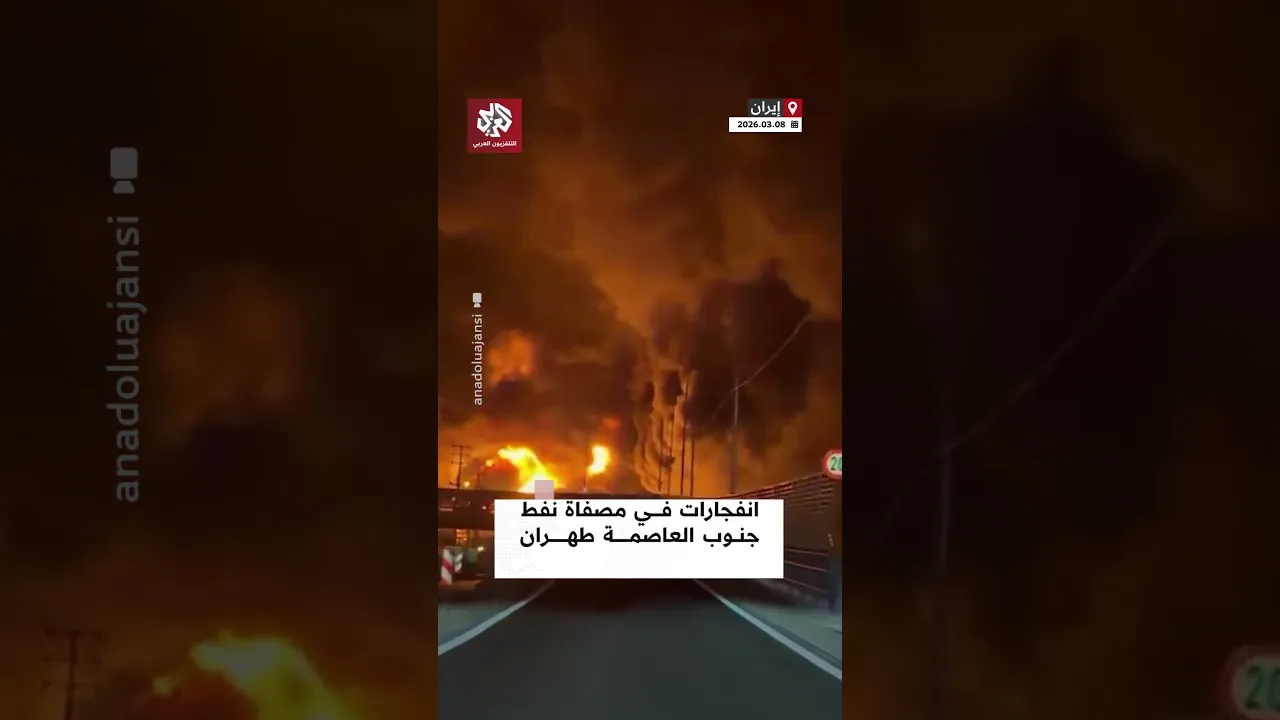 تصاعد ألسنة اللهب عقب استهداف أميركي إسرائيلي لمصفاة نفط شهرياري