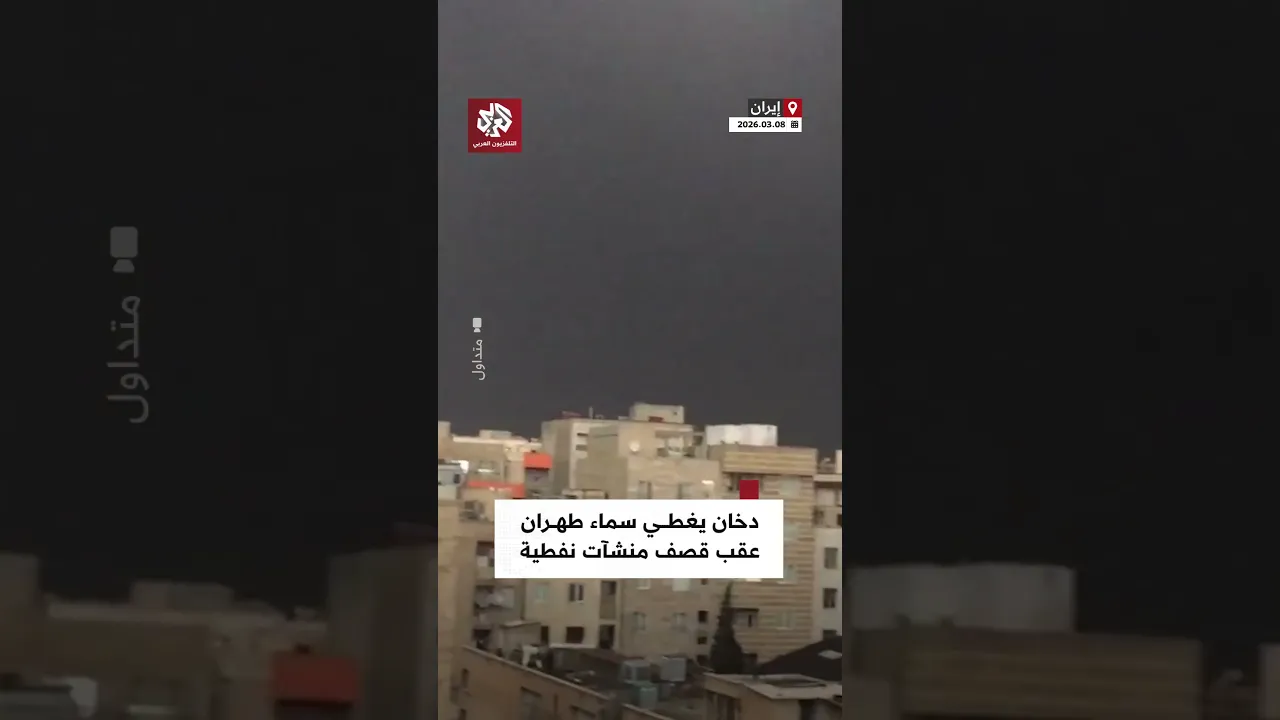 دخان كثيف يغطي سماء طهران جراء الحرائق في منشآت الوقود جراء القصف الأميركي الإسرائيلي