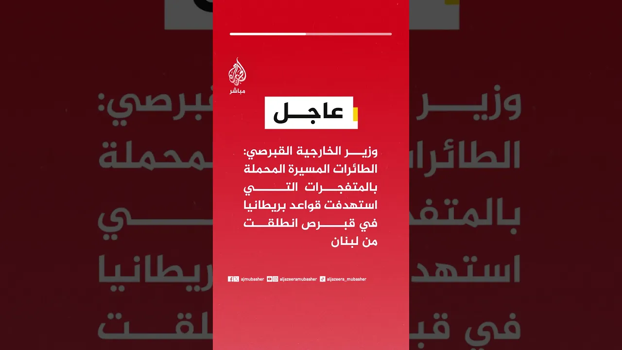 عاجل | وزير الخارجية القبرصي: الطائرات المسيرة المحملة بالمتفجرات التي استهدفت قواعد #بريطانيا في قبرص انطلقت من #لبنان