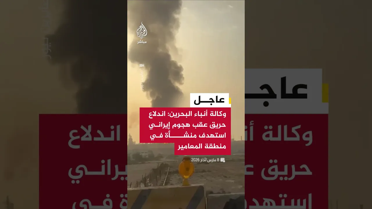 عاجل | وكالة أنباء البحرين: اندلاع حريق عقب هجوم إيراني استهدف منشأة في منطقة المعامير مما تسبب في أضرار مادية دون وقوع إصابات والجهات المختصة تباشر إجراءات إطفاء الحريق في المنشأة