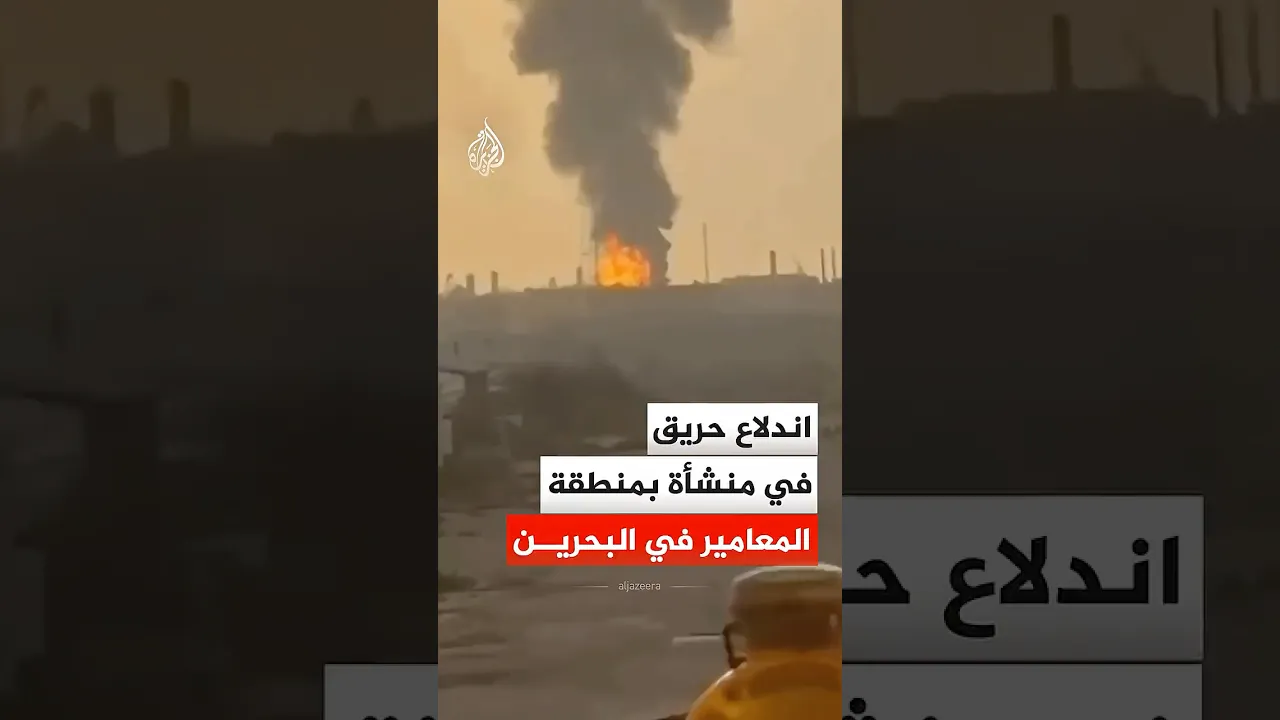مشاهد توثق اندلاع حريق في منشأة بمنطقة المعامير في البحرين، بينما أفادت وكالة أنباء البحرين بأن الحريق نجم عن استهداف إيراني، دون تسجيل خسائر بشرية.