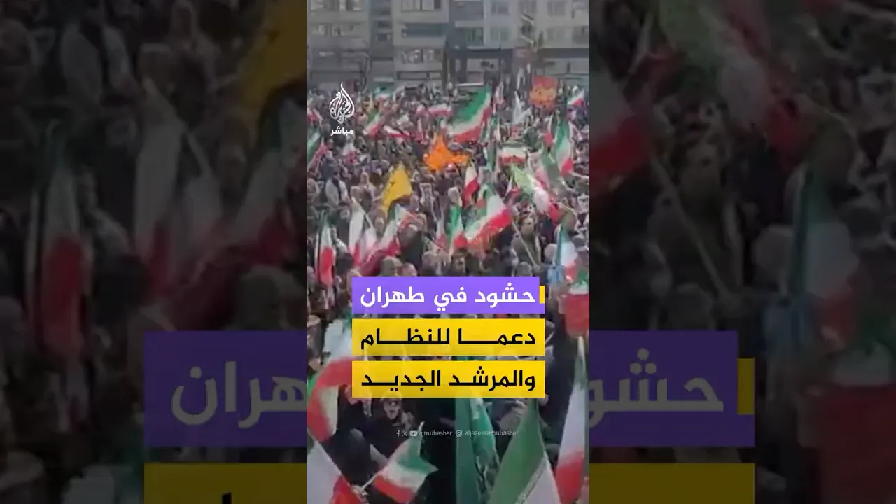 مظاهرات في ساحة الثورة بالعاصمة الإيرانية دعما للنظام وللمرشد الجديد مجتبى خامنئي.
