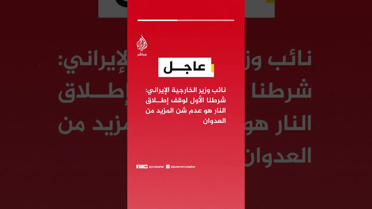 عاجل | نائب وزير الخارجية الإيراني: شرطنا الأول لوقف إطلاق النار هو عدم شن المزيد من العدوان
