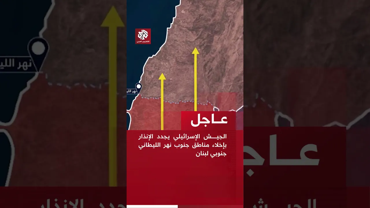 عاجل | الجيش الإسرائيلي يجدد الإنذار بإخلاء مناطق جنوب نهر الليطاني جنوبي لبنان