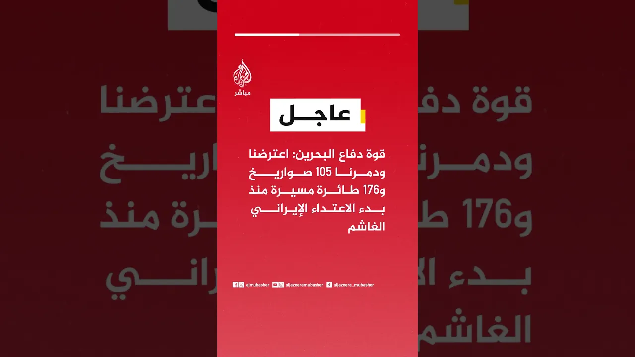 قوة دفاع البحرين: اعترضنا ودمرنا 105 صواريخ و176 طائرة مسيرة منذ بدء الاعتداء الإيراني الغاشم