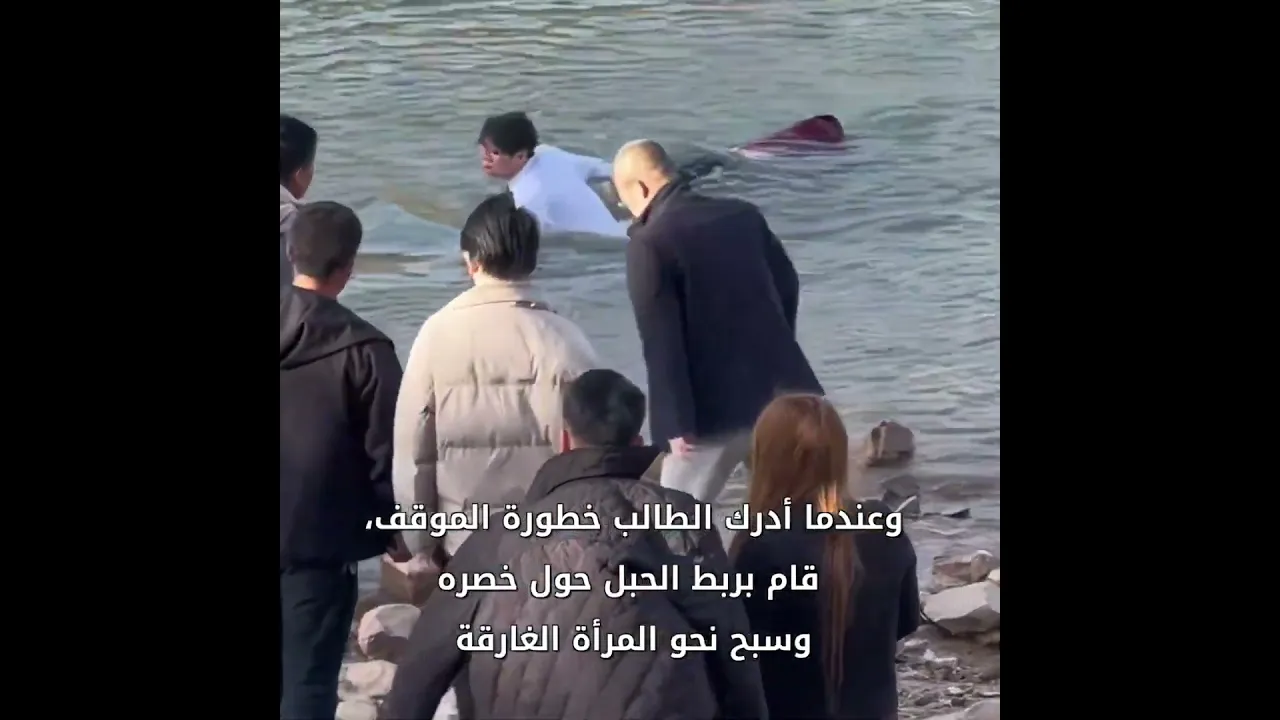 صادف طالب جامعي صيني وقوع امرأة في النهر أثناء مروره بجوار ضفته. وعلى الرغم من محاولات بعض المتواجدين في المكان لإنقاذها باستخدام حبل، إلا أنها لم تكلل بالنجاح. وعندما أدرك الطالب خطورة الموقف، قام بربط الحبل حول خصره وسبح نحو المرأة الغارقة. بفضل التعاون مع الأشخاص المتواجدين على الضفة، استطاعوا سحب الاثنين إلى الشاطئ بنجاح. بعد ذلك، تلقت المرأة الإسعافات الأولية وتم نقلها إلى المستشفى، حيث خرجت الآن من دائرة الخطر.
