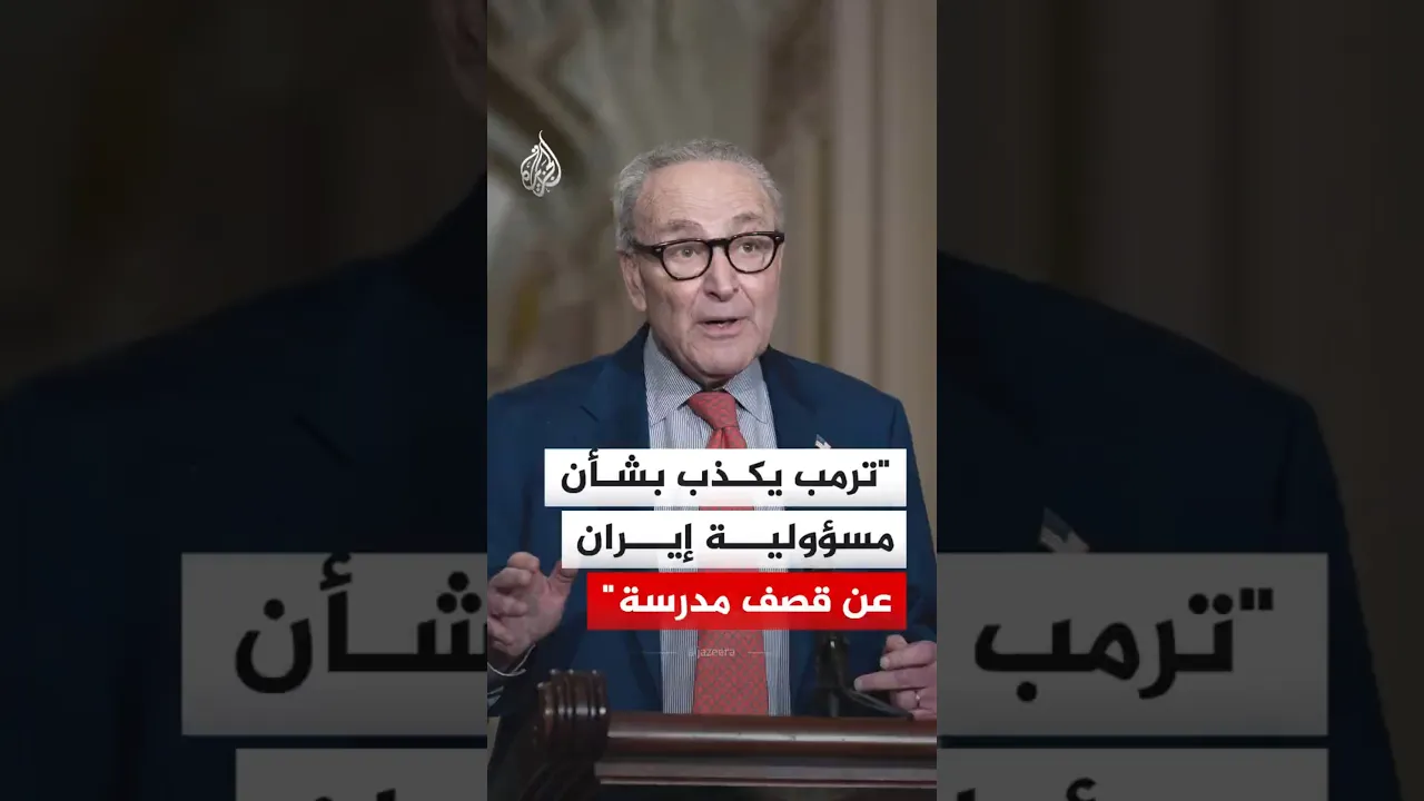 "دونالد ترمب يكذب".. زعيم الأقلية الديمقراطية في مجلس الشيوخ تشاك شومر يهاجم الرئيس الأمريكي، على خلفية تصريحات حمل فيها ترمب إيران مسؤولية قصف مدرسة للفتيات بصواريخ توماهوك.