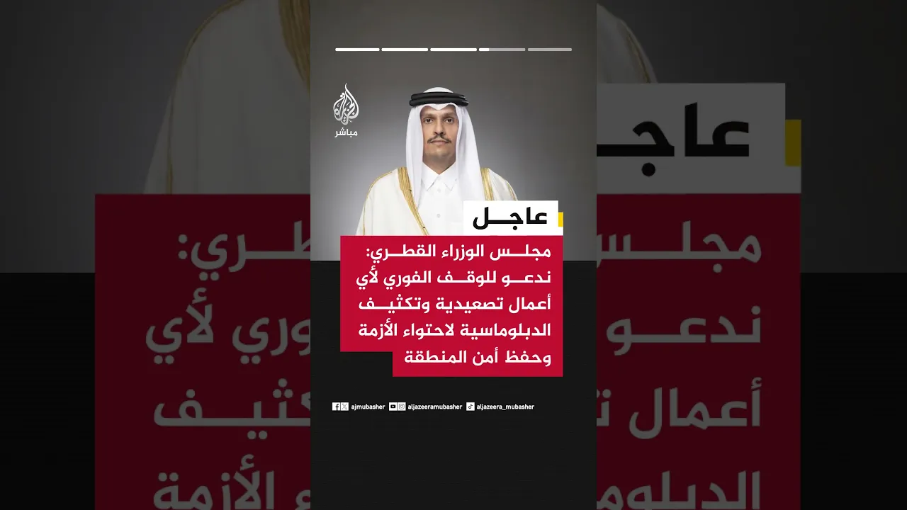 عاجل | مجلس الوزراء القطري: ندين بشدة استمرار الاعتداءات الإيرانية غير المبررة على الأراضي القطرية وأراضي الدول الشقيقة