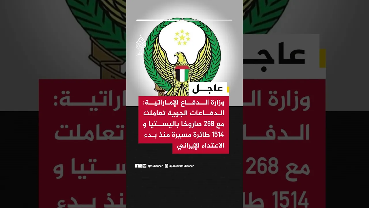 وزارة الدفاع الإماراتية: الدفاعات الجوية تعاملت مع 268 صاروخا باليستيا و1514 طائرة مسيرة