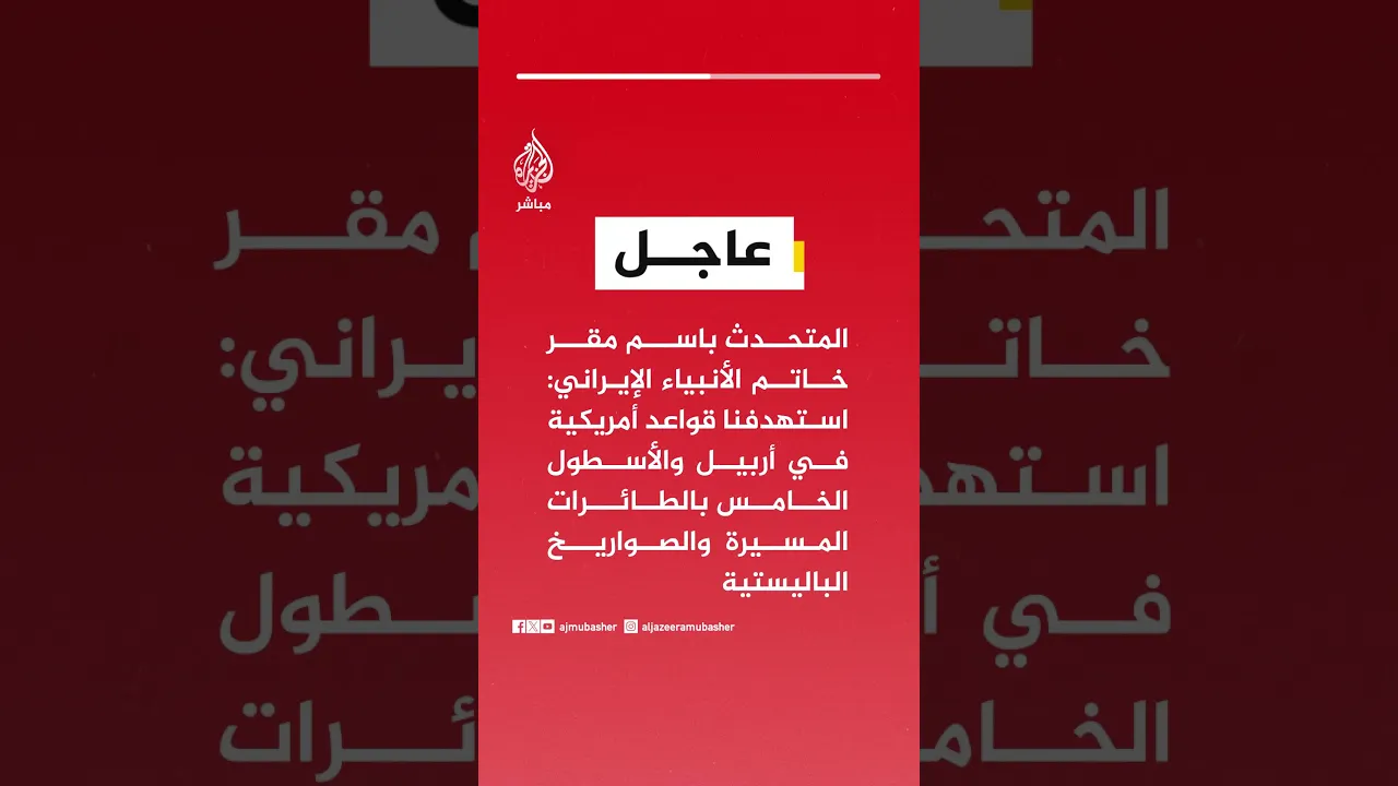 عاجل | المتحدث باسم مقر خاتم الأنبياء العسكري الإيراني: استهدفنا قواعد أمريكية في أربيل