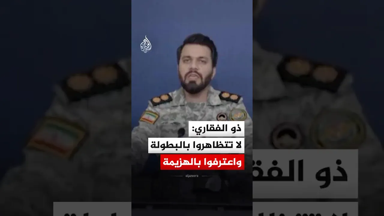 قال المتحدث باسم مقر خاتم الأنبياء التابع للحرس الثوري الإيراني إبراهيم ذو الفقاري، إن على أمريكا الاعتراف بالهزيمة وعدم التظاهر بالبطولة٬ مضيفا أن بلاده لم تعد تعتمد سياسة "الرد بالمثل"٬ بل سياسة "الضربة تلو الضربة".