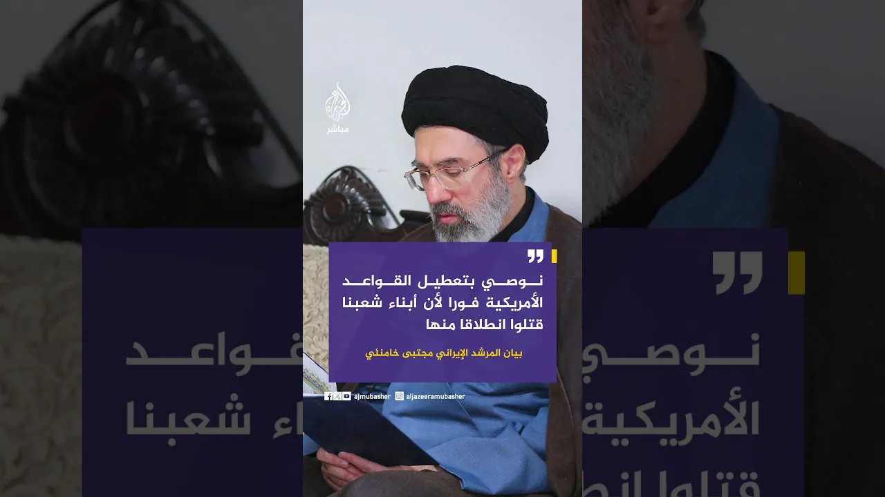 بيان المرشد الإيراني مجتبى خامنئي: على دول المنطقة تحديد موقفها من المعتدين ومن قتلة أبناء شعبنا
