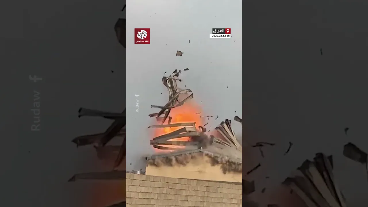 لحظة انفجار طائرة مسيّرة في مخزن يتبع للجيش العراقي بقضاء مخمور في نينوى شمال العراق