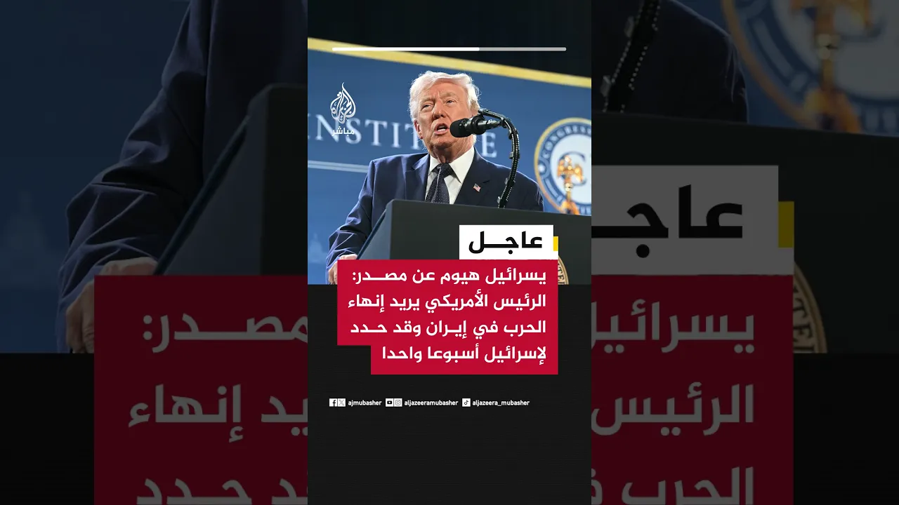 يسرائيل هيوم عن مصدر: الرئيس الأمريكي يريد إنهاء الحرب في إيران وقد حدد لإسرائيل أسبوعا واحدا
