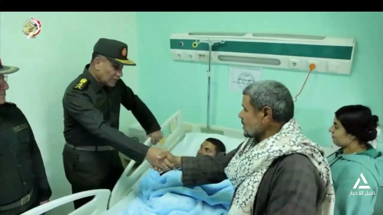 تقرير .. الفريق أشرف سالم يزور عدداً من المصابين بمجمع الجلاء الطبى للقوات المسلحة