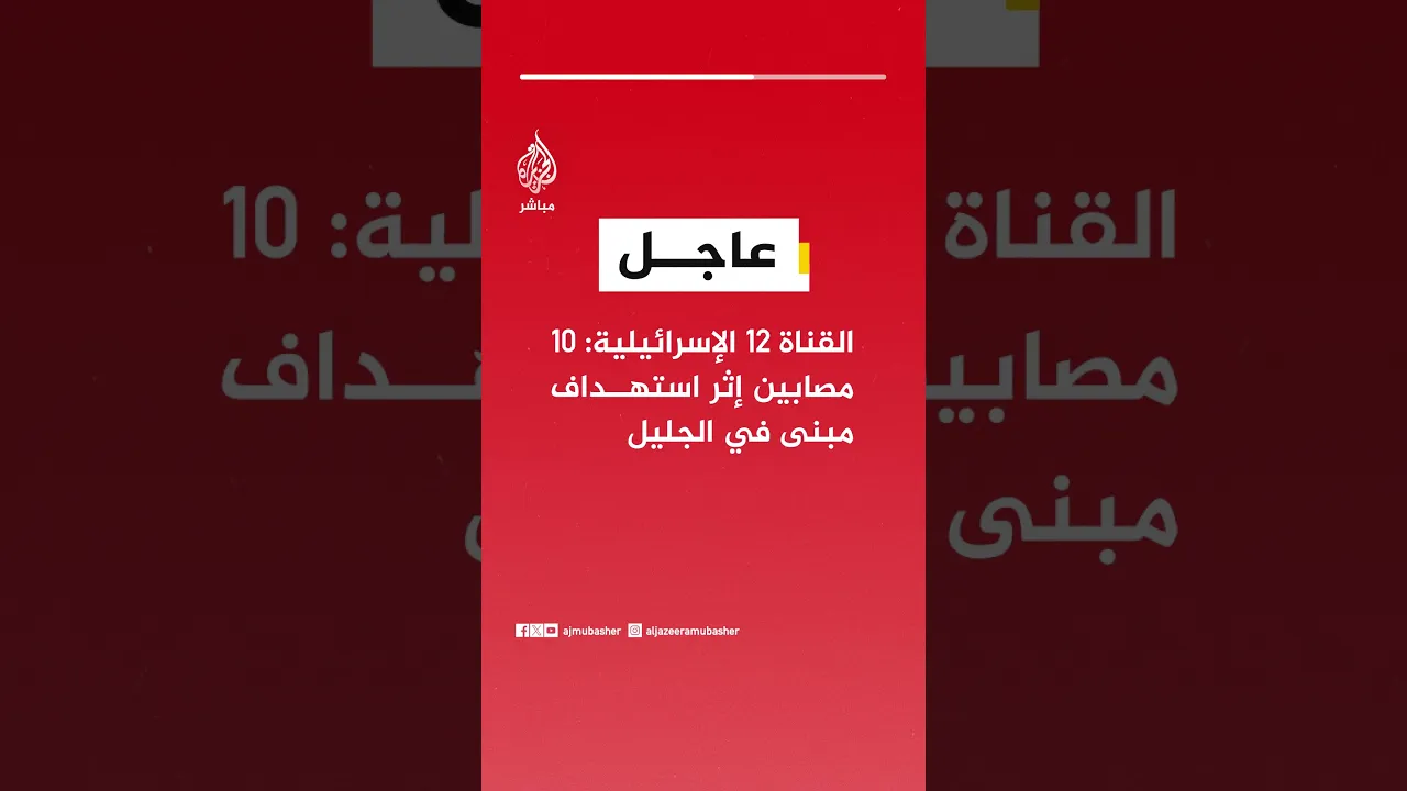 عاجل | القناة 12الإسرائيلية: 10 مصابين إثر استهداف مبنى في الجليل