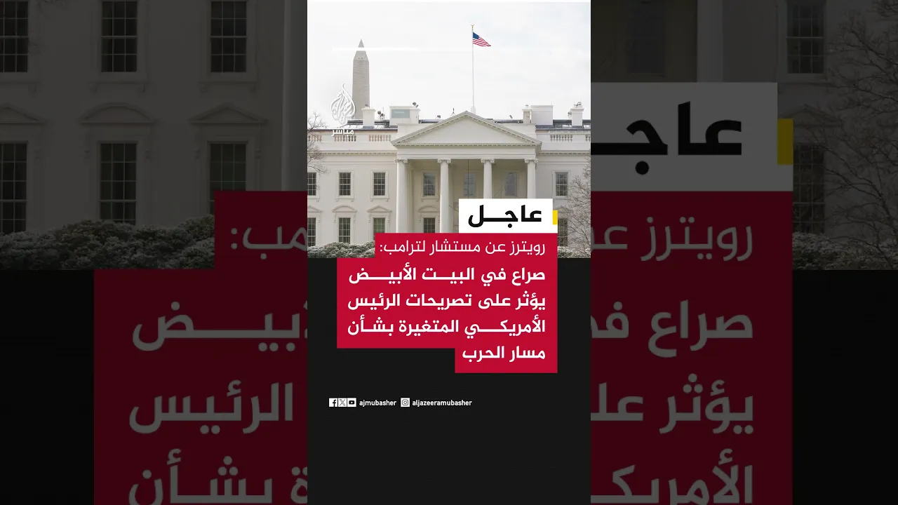 عاجل | رويترز عن مستشار لترامب: صراع في البيت الأبيض يؤثر على تصريحات الرئيس الأمريكي المتغيرة بشأن مسار الحرب