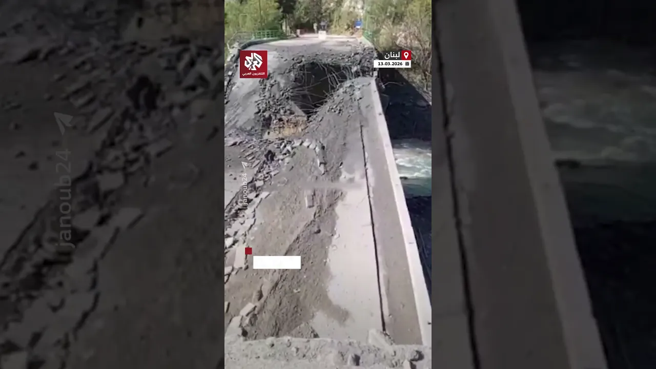 آثار الدمار في جسر الزرارية فوق نهر الليطاني في لبنان بعد استهدافه من قِبل جيش الاحتلال الإسرائيلي