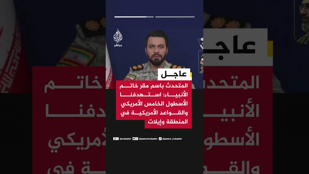 عاجل | المتحدث باسم مقر خاتم الأنبياء الإيراني: استهدفنا في الموجة 43 من الوعد الصادق 4 أهدافا في قلب تل أبيب وشمال الأراضي المحتلة وإيلات بعدد كبير من المسيرات