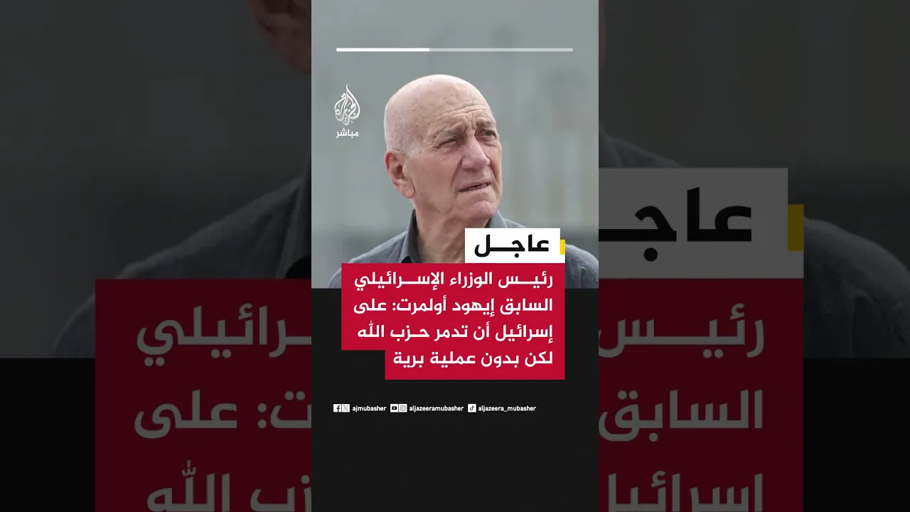 عاجل | رئيس الوزراء الإسرائيلي السابق إيهود أولمرت للجزيرة مباشر: على إسرائيل أن تدمر حزب الله لكن بدون عملية برية