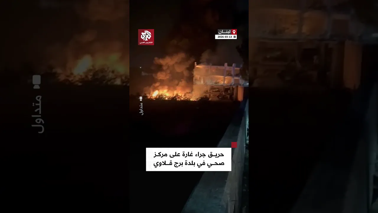 حريق جرّاء غارة إسرائيلية على مركز صحي تابع للهيئة الإسلامية في بلدة برج قلاوي جنوب لبنان