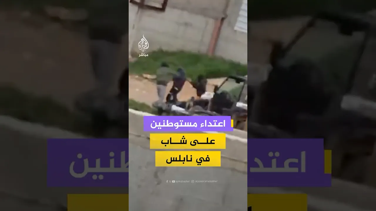 مقطع يوثق اعتداء اثنين من المستوطنين بالضرب على شاب في بلدة قصرة جنوب نابلس