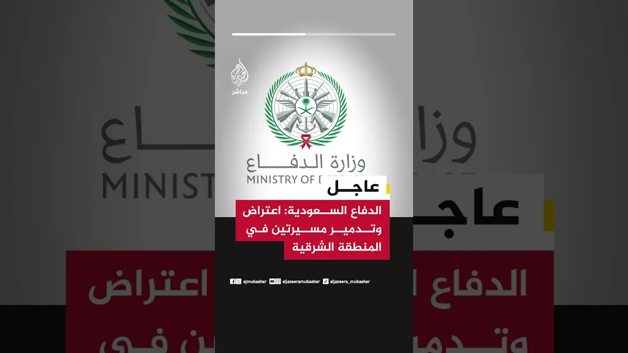 عاجل | الدفاع السعودية: اعتراض وتدمير مسيرتين في المنطقة الشرقية