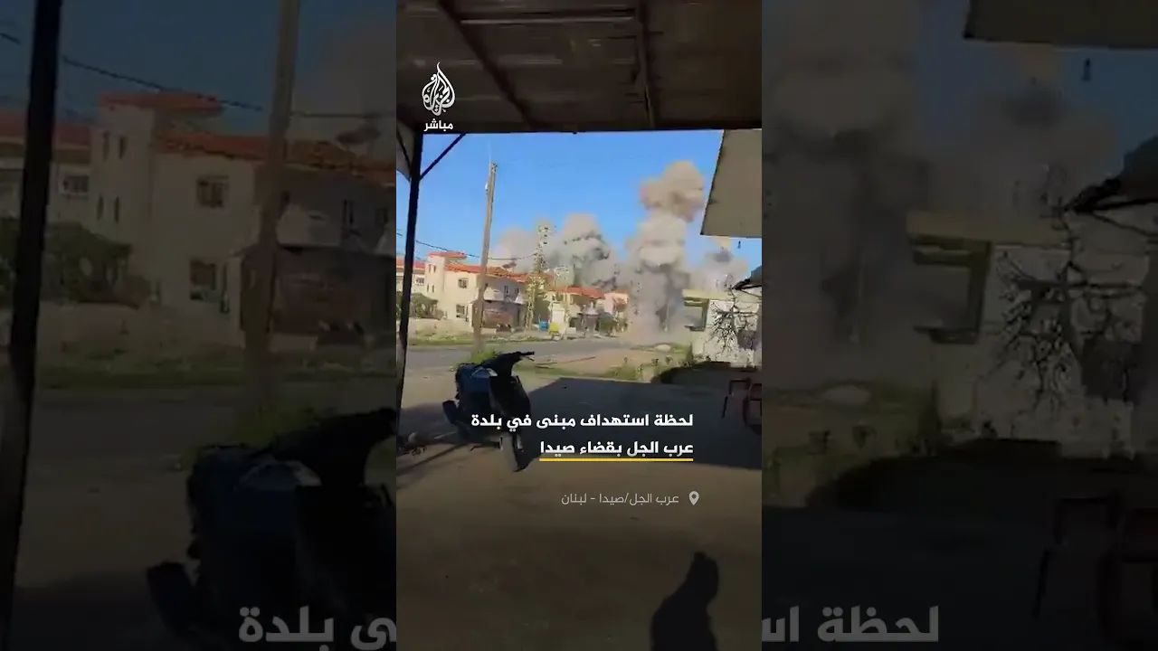 مشاهد توثق لحظة استهداف مبنى في بلدة عرب الجل بقضاء صيدا جنوبي لبنان
