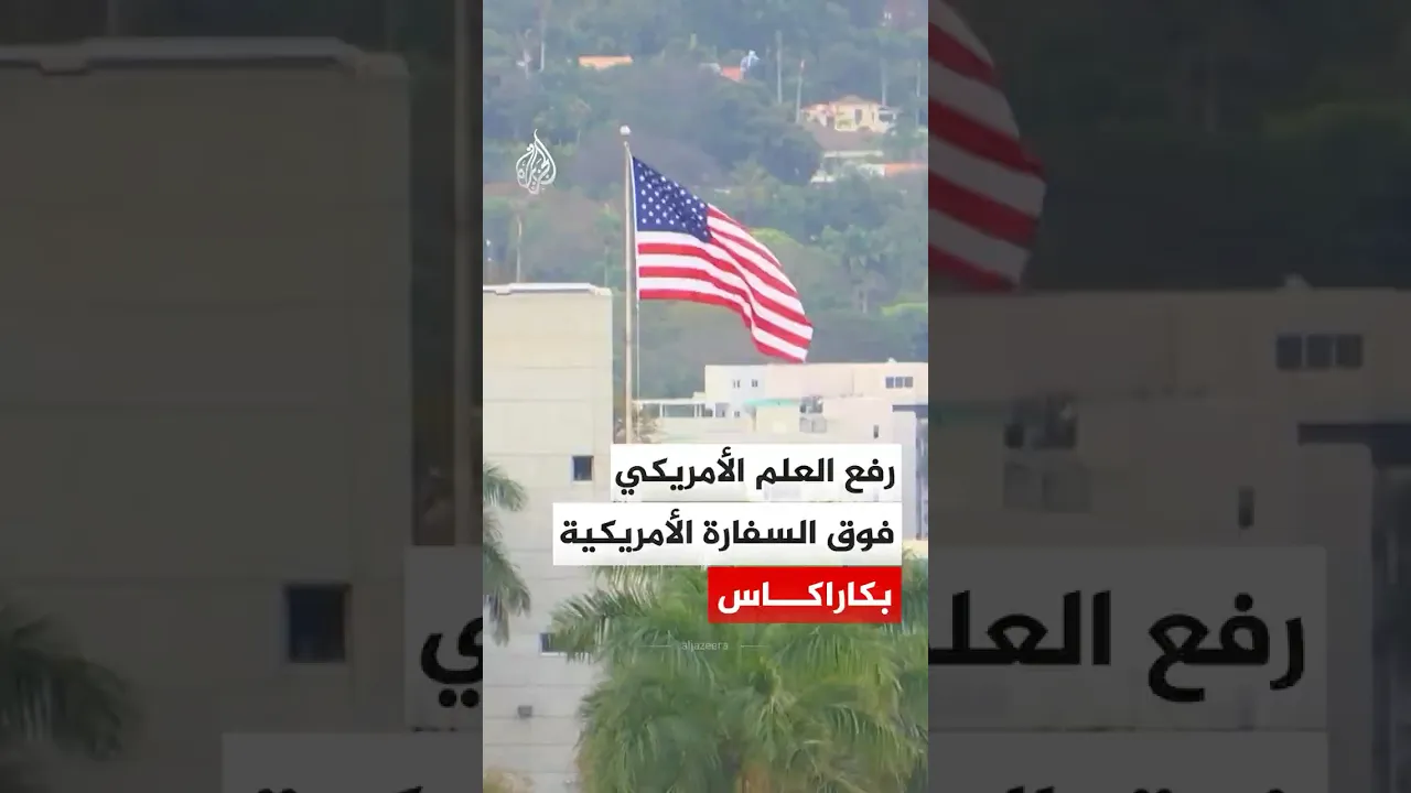 رفع العلم الأمريكي مجددا فوق السفارة الأمريكية في العاصمة الفنزويلية كاراكاس بعد سبع سنوات من قطع العلاقات الدبلوماسية بين البلدين، وذلك خلال مراسم أقيمت السبت أعلن خلالها استئناف الأنشطة الدبلوماسية المباشرة بين واشنطن وكاراكاس.