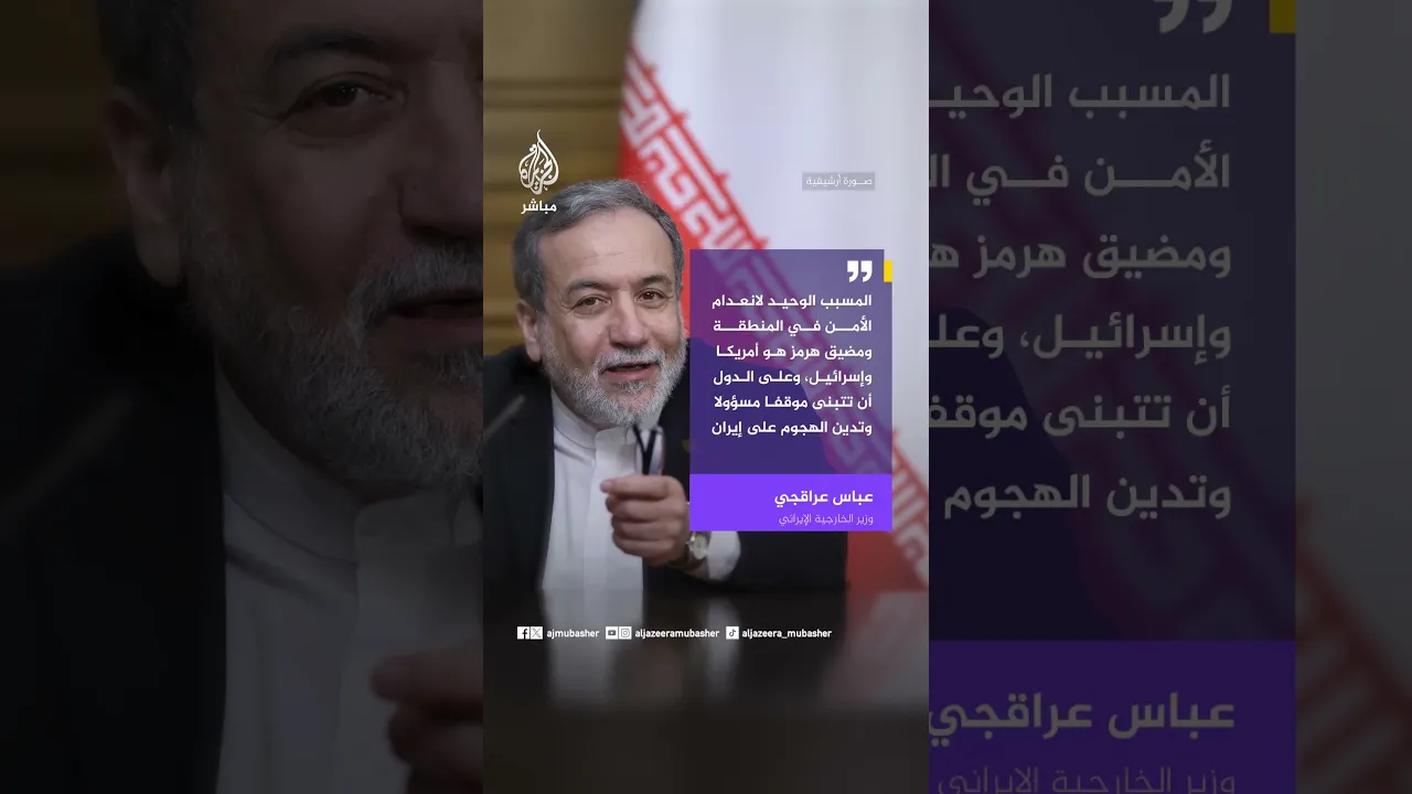 عراقجي: من الضروري أن تتبنى الدول موقفا مسؤولا وأن تدين الهجوم على إيران