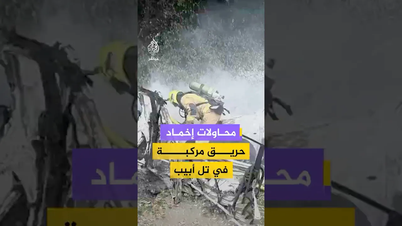 فيديو يوثق محاولة طواقم الإطفاء الإسرائيلية إخماد النيران في مركبة بعد سقوط شظايا في تل أبيب.