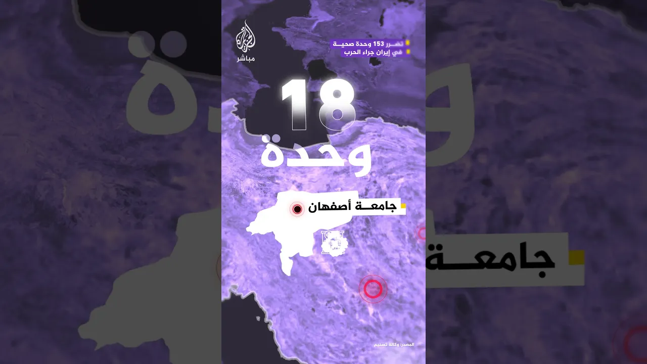 تضرر 153 منشأة صحية خلال الأحداث الأخيرة، بينها 56 مركز خدمات صحية شاملة، فيما سجلت جامعـتا كرمانشاه وأصفهان أعلى عدد من المنشآت المتضررة.