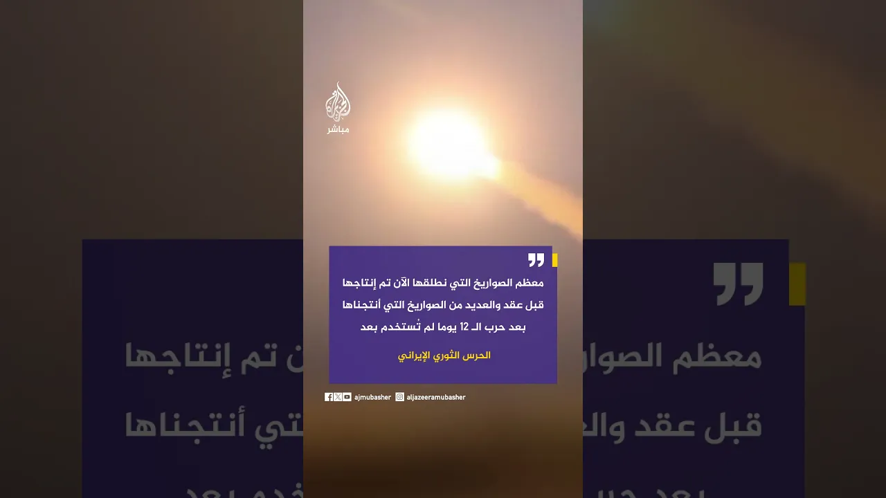 الحرس الثوري الإيراني: معظم الصواريخ التي نطلقها الآن تم إنتاجها قبل عقد والعديد من الصواريخ التي أنتجناها بعد حرب الـ 12 يوما لم تُستخدم بعد