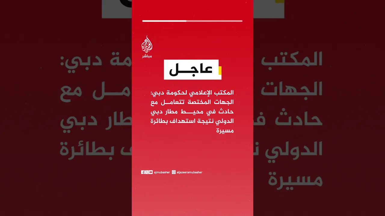 المكتب الإعلامي لحكومة دبي: الجهات المختصة تتعامل مع حادث في محيط مطار دبي الدولي نتيجة استهداف بطائرة مسيرة