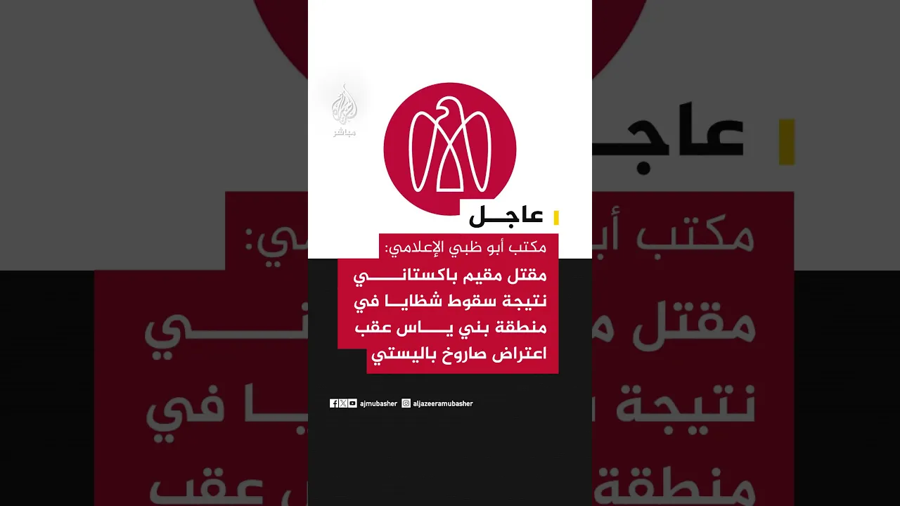 مكتب أبو ظبي الإعلامي: مقتل مقيم باكستاني نتيجة سقوط شظايا في منطقة بني ياس عقب اعتراض صاروخ باليستي