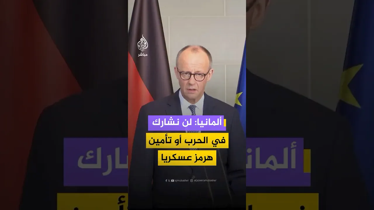 المستشار الألماني فريدريش ميرتس: لن نشارك في الحرب ضد #إيران أو تأمين الملاحة في #مضيق_هرمز عسكريا