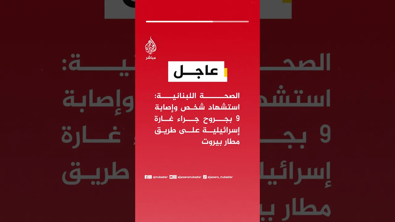 عاجل | الصحة اللبنانية: استـ ـشـهـاد شخص وإصابة 9 بجروح جراء غارة إسرائيلية على طريق مطار #بيروت