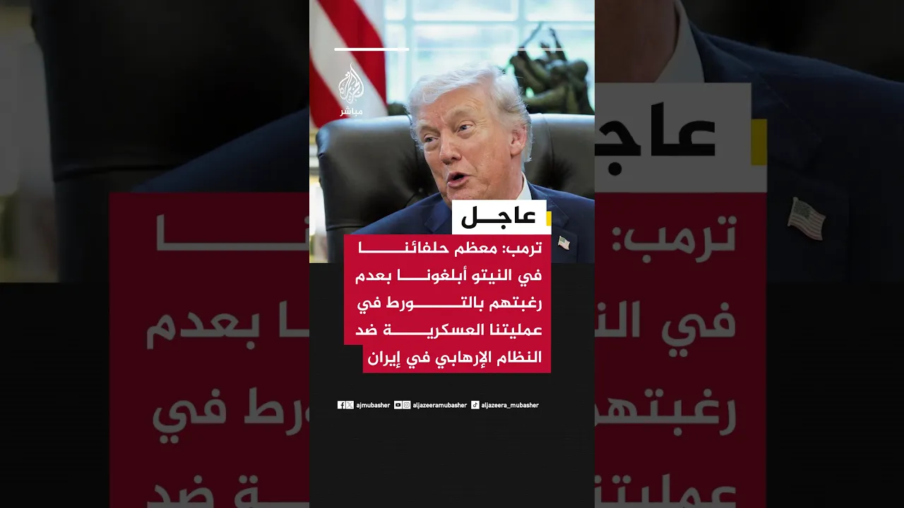 عاجل | #ترامب: معظم حلفائنا في النيتو أبلغونا بعدم رغبتهم بالتورط في عمليتنا العسكرية ضد النظام الإرهـ ـابـي في #إيران