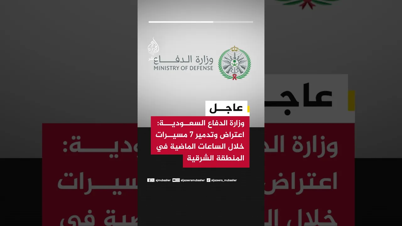 وزارة الدفاع #السعودية: اعتراض وتدمير 7 مسيرات خلال الساعات الماضية في المنطقة الشرقية