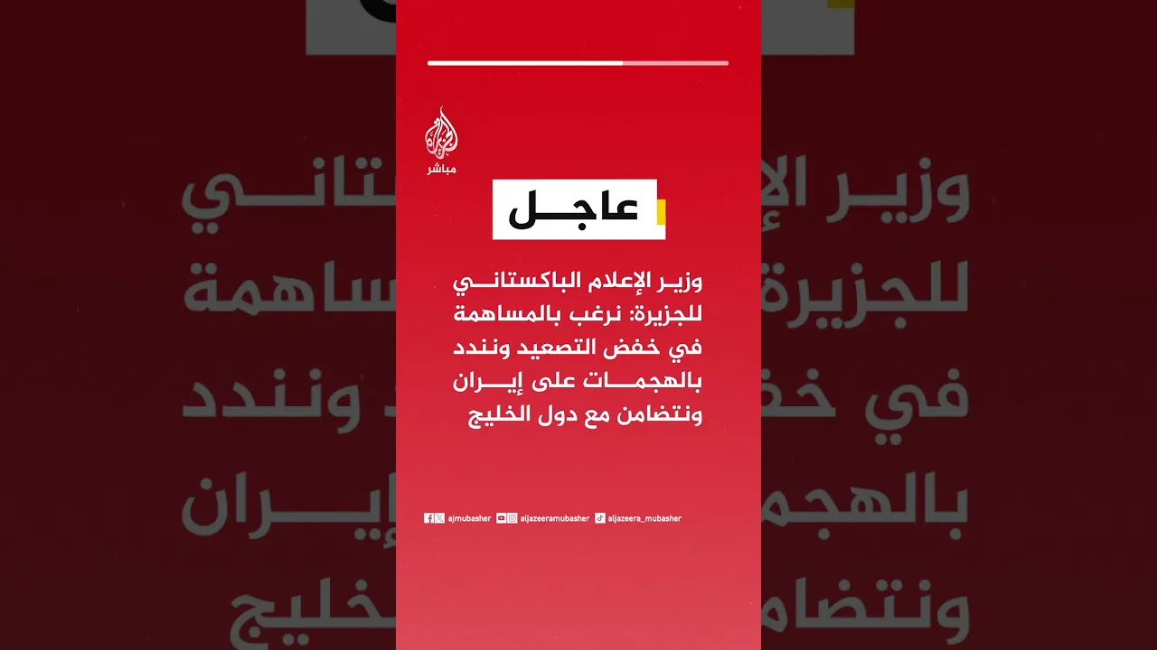 عاجل | وزير الإعلام الباكستاني للجزيرة: نرغب بالمساهمة في خفض التصعيد ونندد بالهجمات على إيران ونتضامن مع دول الخليج