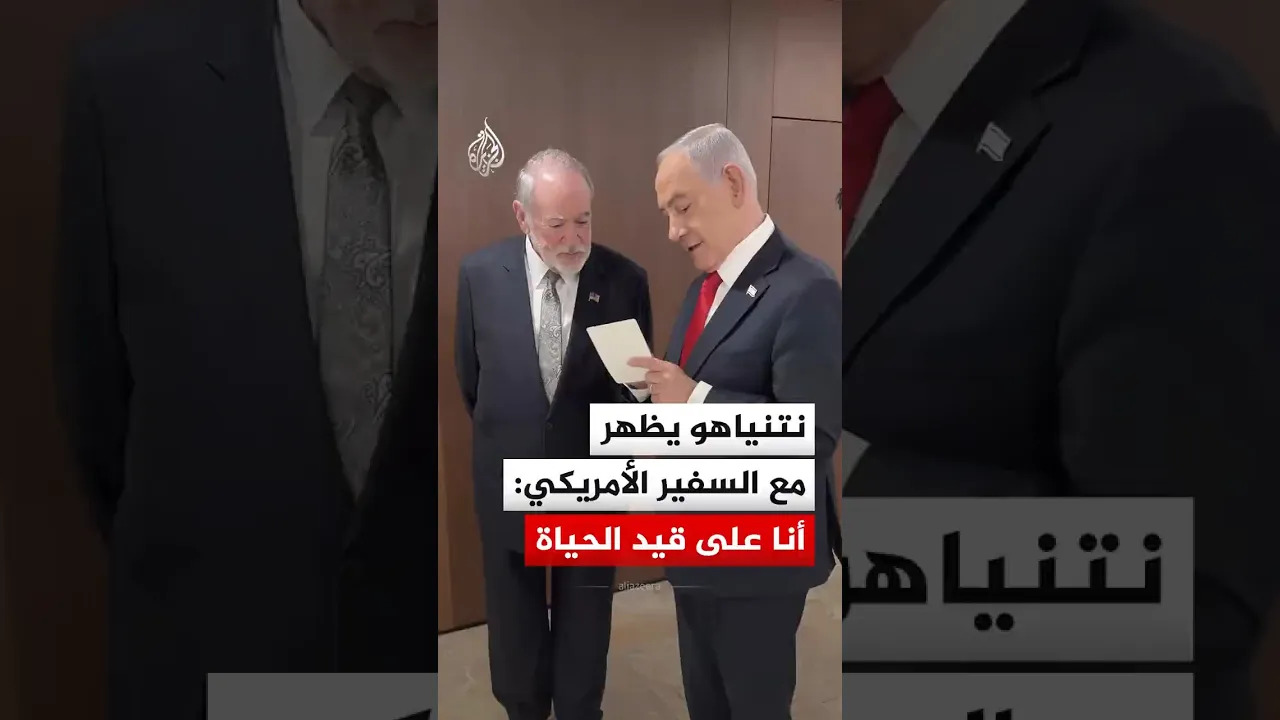 نشر رئيس الوزراء الإسرائيلي بنيامين نتنياهو مشاهد على صفحته برفقة السفير الأمريكي مايك هاكابي، مساء الثلاثاء٬ مشيرا إلى أنه على قيد الحياة. فيما قال هاكابي إن الرئيس طلب منه الحضور للاطمئنان على نتنياهو٬ وكان مكتب نتنياهو وصف في بيان الأخبار المتداولة بشأن اغتياله بـ"الكاذبة".